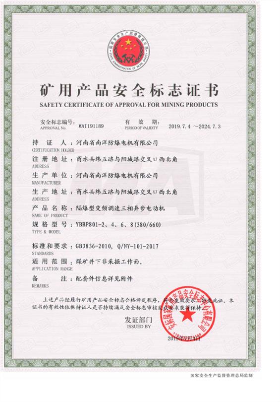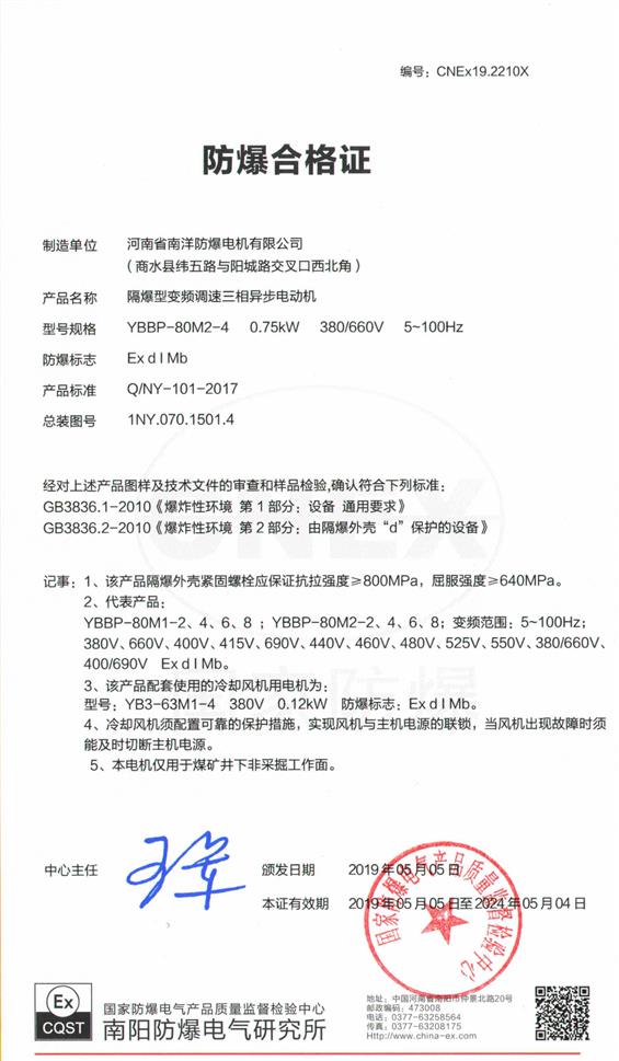 YBBP系列隔爆型变频调速三相异步电动机,是我公司根据市场需求而开发的新产品,与变频器配合使用,可以实现较宽范围内平滑无级调速,调速范围、动态响应、调速精度、低频转矩、转差补偿、功率因数、效率等方面均有很大的优越性,是满足煤炭、石油、化工等有爆炸性气体混合物电动机防爆性能符合GB3868.1-2010《爆炸性环境 第1部分:设备通用要求》和GB3868.2-2010《爆炸性环境 第2部分:由隔爆外壳“d”保护的设备》的规定。
